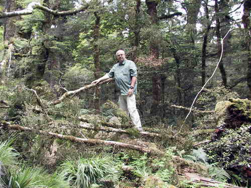 Der Wald hatte sich wieder verändert, die großen Farne fehlten und andere Pflanzen kamen zum Vorschein. Diverse morsche Bäume waren hier über den recht schmalen Track gefallen und wir mussten so manches Hindernis pas- sieren.
