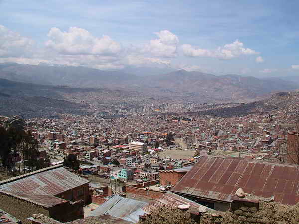 Unsere Fahrt geht weiter nach La Paz. Auf dem so genanten Altiplano, einer Hochebene vor den riesigen Anden geht es weiter. Hier oben (4000 m) wird noch Ackerbau und Viehzucht betrieben, unvorstellbar für unsere Verhältnisse. Die Bebauung wird immer dichter und nach einer Kurve der Straße stehen wir plötzlich am Rand eines riesigen Talkessels, in dem La Paz liegt.