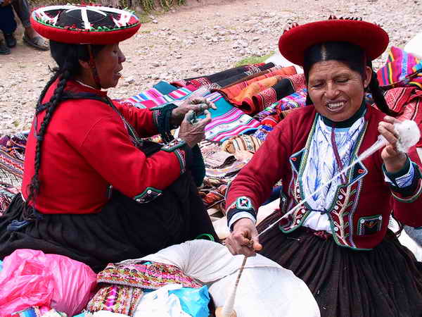 Weiter ging es zu einem einheimischen Markt in Chincheros (3760 m). Uns bot sich ein farbenfrohes Bild. Die Frauen trugen weite Röcke aus bunter Wolle und wir konnten viele Variationen von hutähnlichen Kopfbedeckungen bewundern. Der Markt bot Gegenstände des täglichen Bedarfs wie auch Obst und Gemüse und natürlich Souvenirs für die Touristen. Auch selbstgebrautes Bier in Plastiktonnen konnte man hier kosten. Oberhalb des Ortes befindet sich die Dorfkirche, erbaut auf Inka-Mauern. Von hier aus hat man einen phantastischen Blick in die umliegende Landschaft.