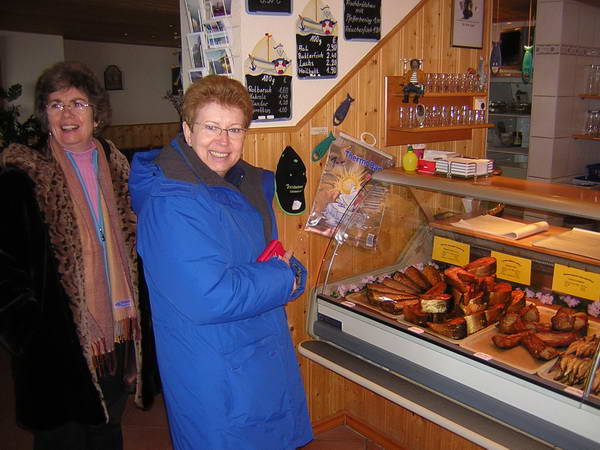 Bevor wir uns jedoch endgültig auf den Weg nach Berlin machten, fuhren wir noch zu einer Fischräucherei am Strand von Binz. Hier gibt es täglich frisch geräucherten Fisch und es standen schon einige Autos vor dem Laden. Elke und Annelie kauften sich jeweils ein Stück Heilbutt und dann ging's los.