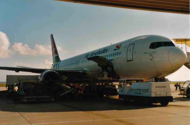 Der Flug von Berlin nach Frankfurt verlief ohne Probleme. Wir hatten uns bewusst für South African Airways entschieden, da es bei dieser Airline auf einigen Jumbo-Flügen auch im Oberdeck eine Economy-Class geben sollte. So kam es dann auch, dass wir beim Einchecken so rechtzeitig am Counter waren, das wir tatsächlich 2 Plätze auf dem Oberdeck bekamen. Wir waren beide ganz begeistert. Wir bummelten dann noch ein bisschen über den Frankfurter Flughafen. Am Lufthansa-Schalter für den Südafrikaflug war auch schon einiges los, beide Maschinen sollten lt. Flugplan etwa zur gleichen Zeit abheben. Doch zu unserer Freude sahen wir, dass für die LH-Maschine ca. 2 Std. Verspätung angezeigt wurden. Wir hatten also die richtige Wahl mit SAA getroffen.