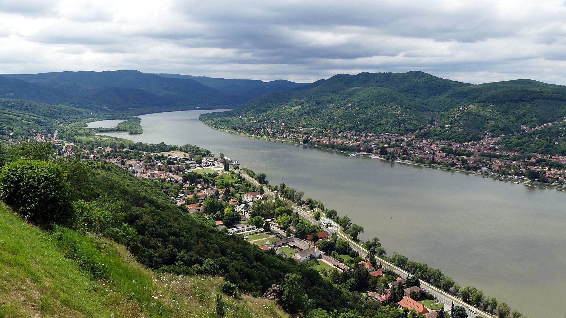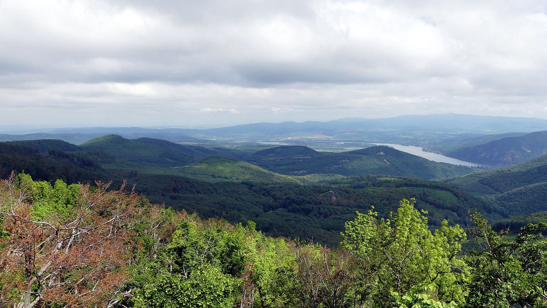 Immer weiter klettert der Wagen bergauf und wir ereichen nach etwa 60 Minuten den Aussichtspunkt Dobogóko auf dem Berg Dobogó-ko (699 m) im "Visegráder Gebirge". Bei etwas kräftigem Wind haben wir von hier oben schon eine erste tolle Aussicht auf das so genannte Donauknie. Leider ist es ziemlich stark bewölkt, aber die Sicht ist gut. Eine sehr waldreiche und „hügelige“ Landschaft. Wir fahren ein Stück zurück und biegen dann nach Esztergom ab, wo wir wieder die Donau erreichen.