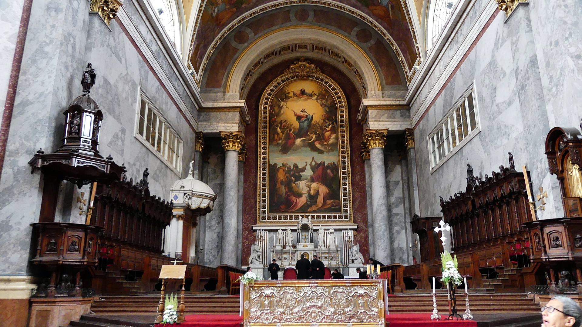 Bei der Dombesichtigung stellt diese Kapelle daher etwas besonderes dar. In der Kapelle findet man an einer Wand Einritzungen, die auf das Jahr 1688 zurückzuführen sind. Als wir genau im Zentrum der Basilika stehen sehen wir die riesigen Ausmaße der Kirche. Eine gewaltige Kuppel von fast 100 m erhebt sich über uns. Vor uns ein sehr großes Altarbild, angeblich das größte Gemälde der Welt auf einer Leinwand. Hinter uns die große Orgel, die im Laufe der Jahrzehnte mehrmals umgebaut wurde. Es gibt sehr viel Interessantes hier zu sehen und wir bekommen genügend Zeit uns alles anzusehen.