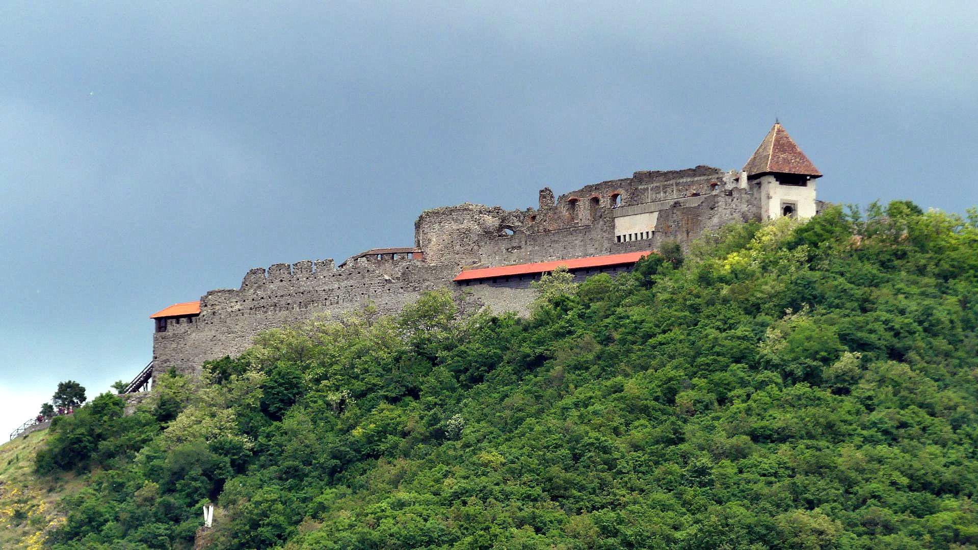 Von hier aus geht es zur Burg von Visegrád. Vom Parkplatz aus sind es zunächst 55 Stufen bis zum Eingang der Burganlage, aber es folgen noch viele weitere. Nachdem bereits die Römer hier Anlagen zur Grenzsicherung errichtet hatten, wurde die erste Burg 1241 hier oben auf dem Berg erbaut. Im Laufe der Zeit wurde immer wieder um- und angebaut, so dass heute insgesamt 3 Mauern die eigentliche alte Burg umgeben. Wir besuchen fast alle Teile der Burg, von der allerdings nicht mehr sehr viel übriggeblieben ist. Die Ausblicke in die Landschaft von hier oben aus sind allerdings grandios.